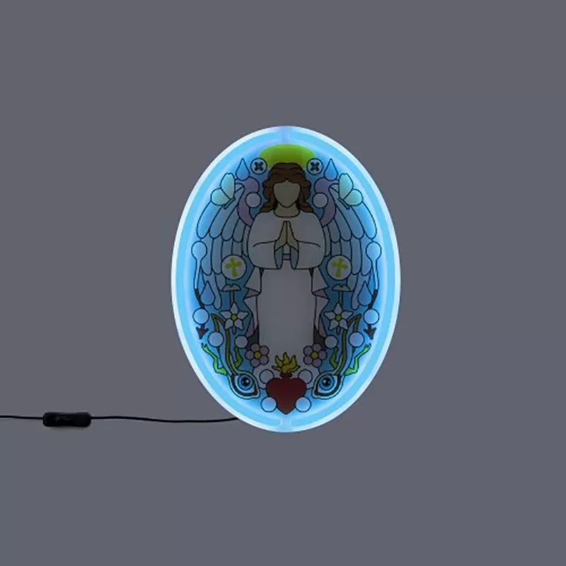 Angel Gabriel, the Virgin Mary and Jesus on the cross become a series of holy neon lights, ready to fill your life with a divine glow. Get your daily dose of biblical funk!