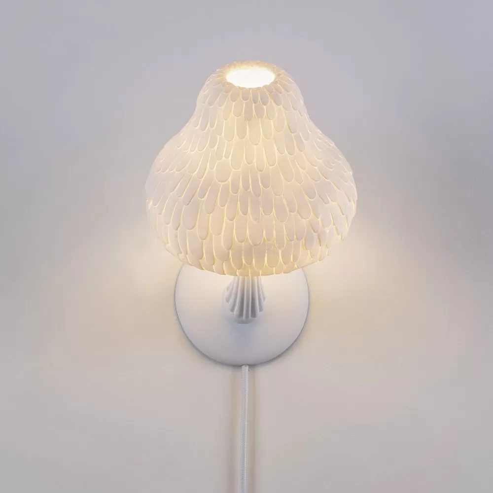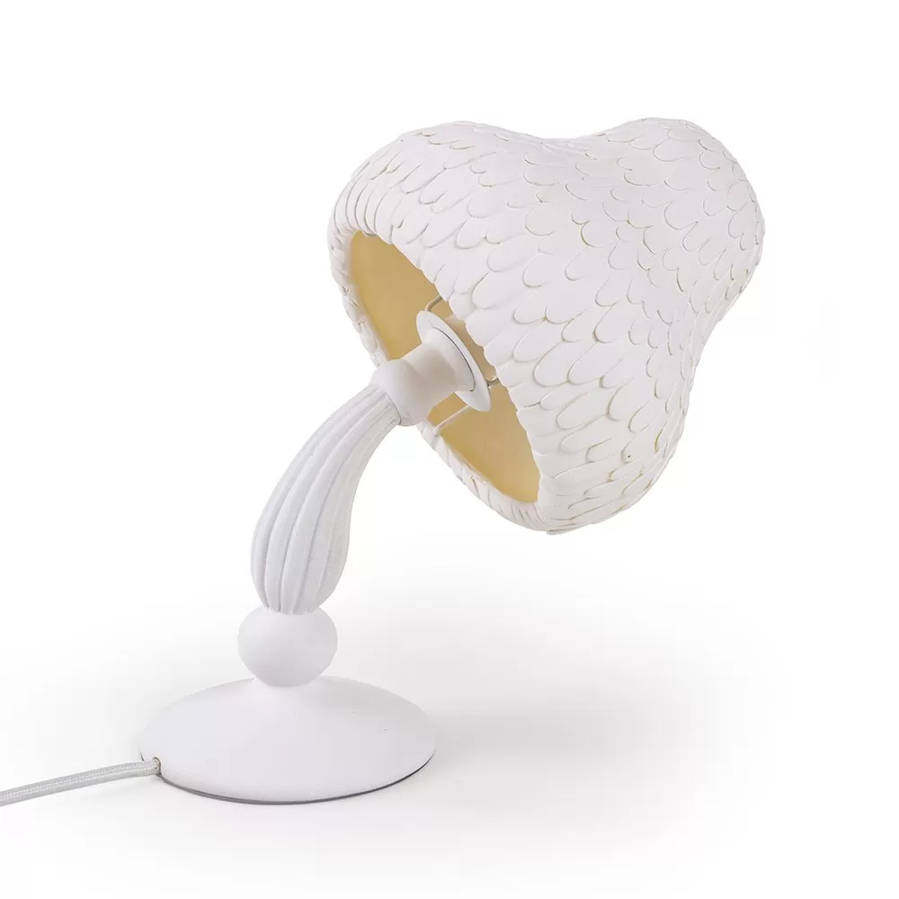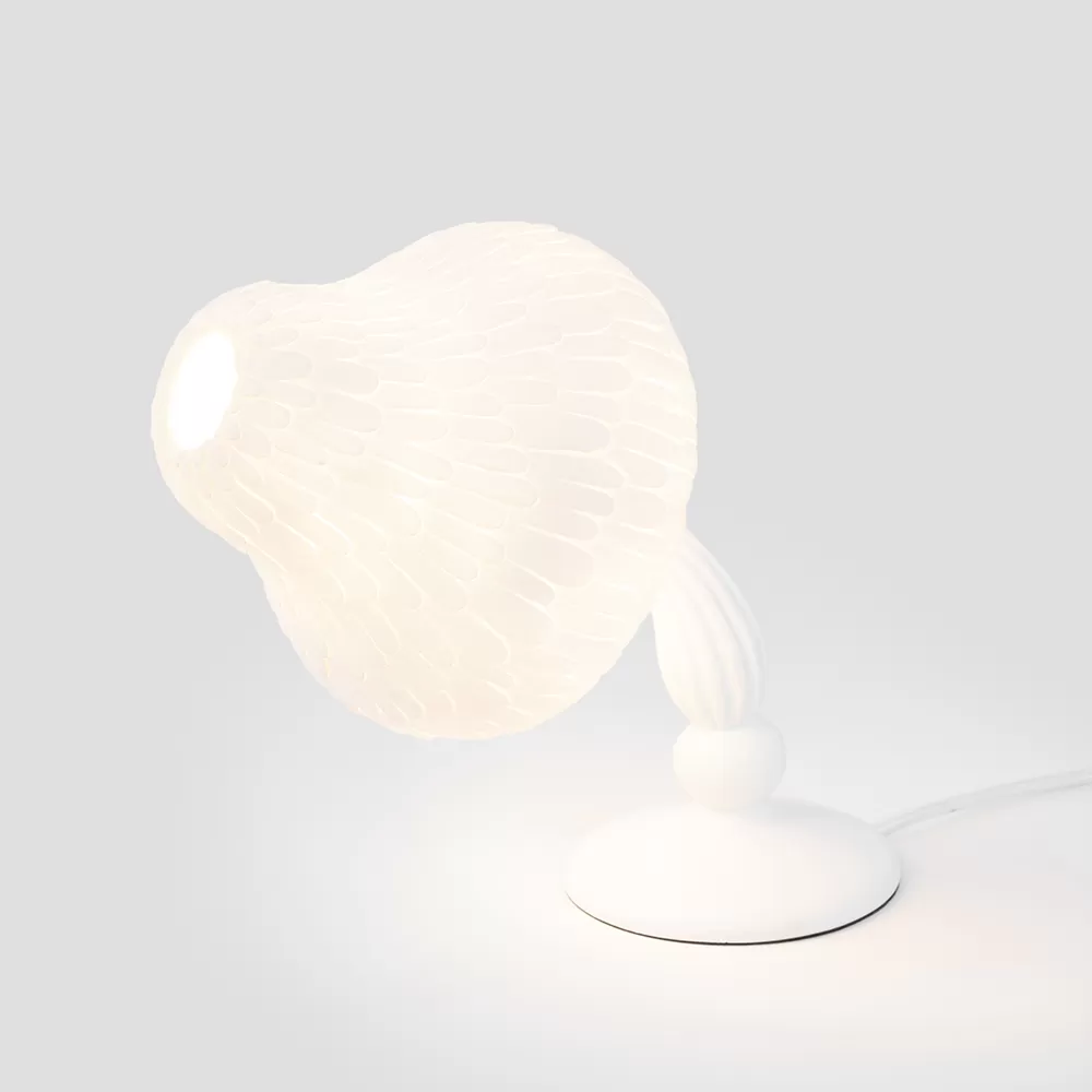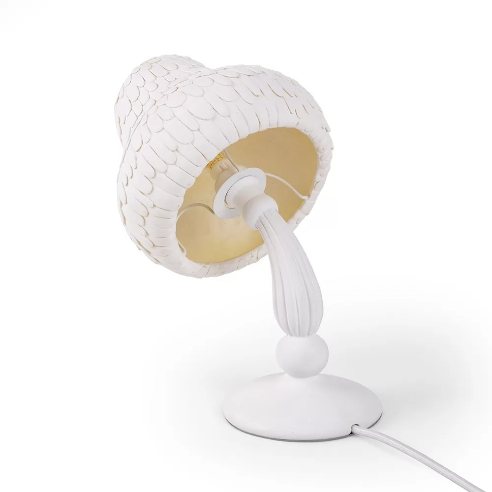 Halfway through flora and fauna, the mushroom becomes a curious and quirky character, who looks like it’s coming straight out of Fantasia. With his “Mushroom Light” Marcantonio creates a sculptured lamp, giving a Disney twist to its classical shape.