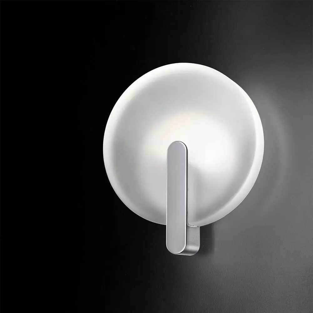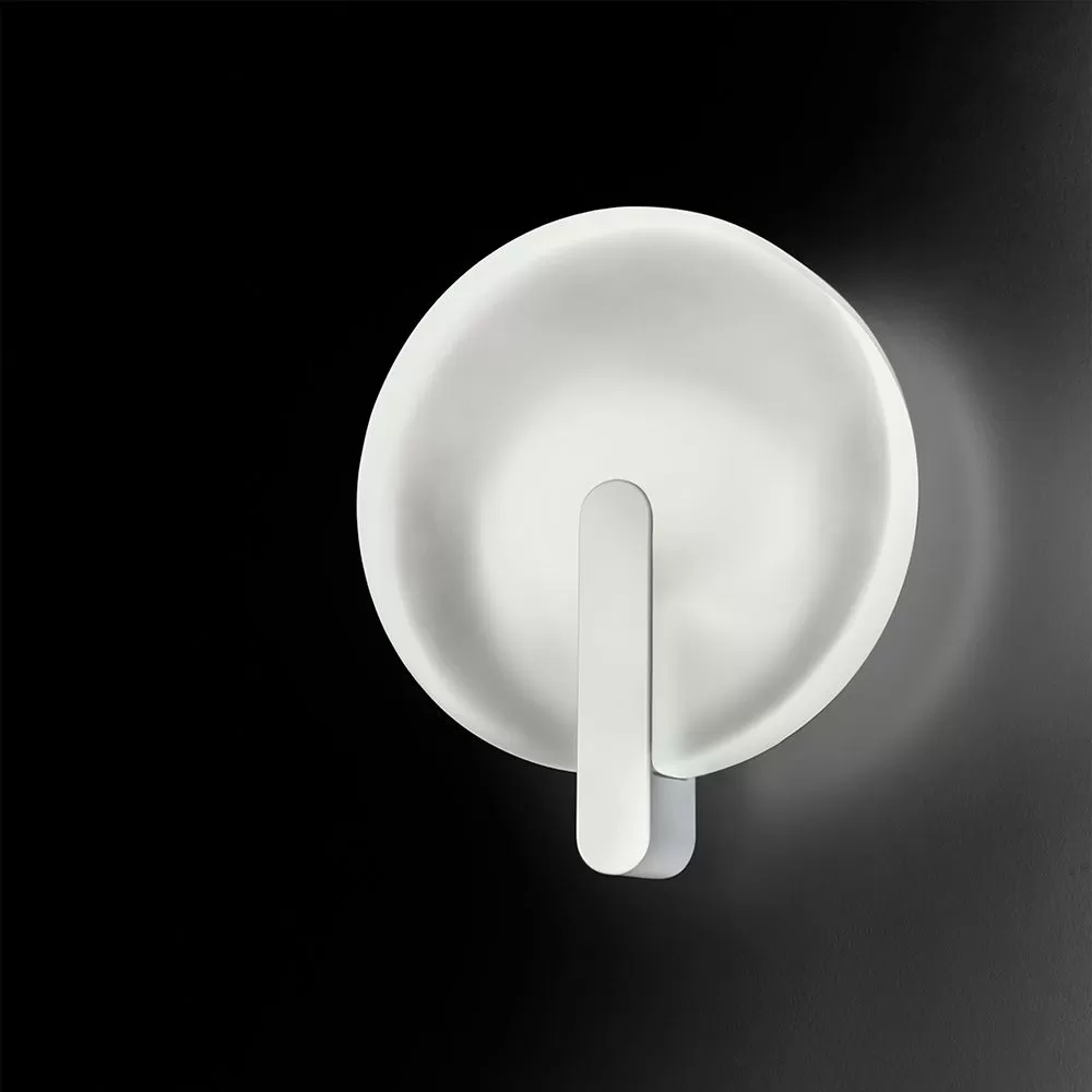 Wall lamp in metal with light gold finish and satin glass diffuser. Available in different colours. Modern Catalogue Incanto.