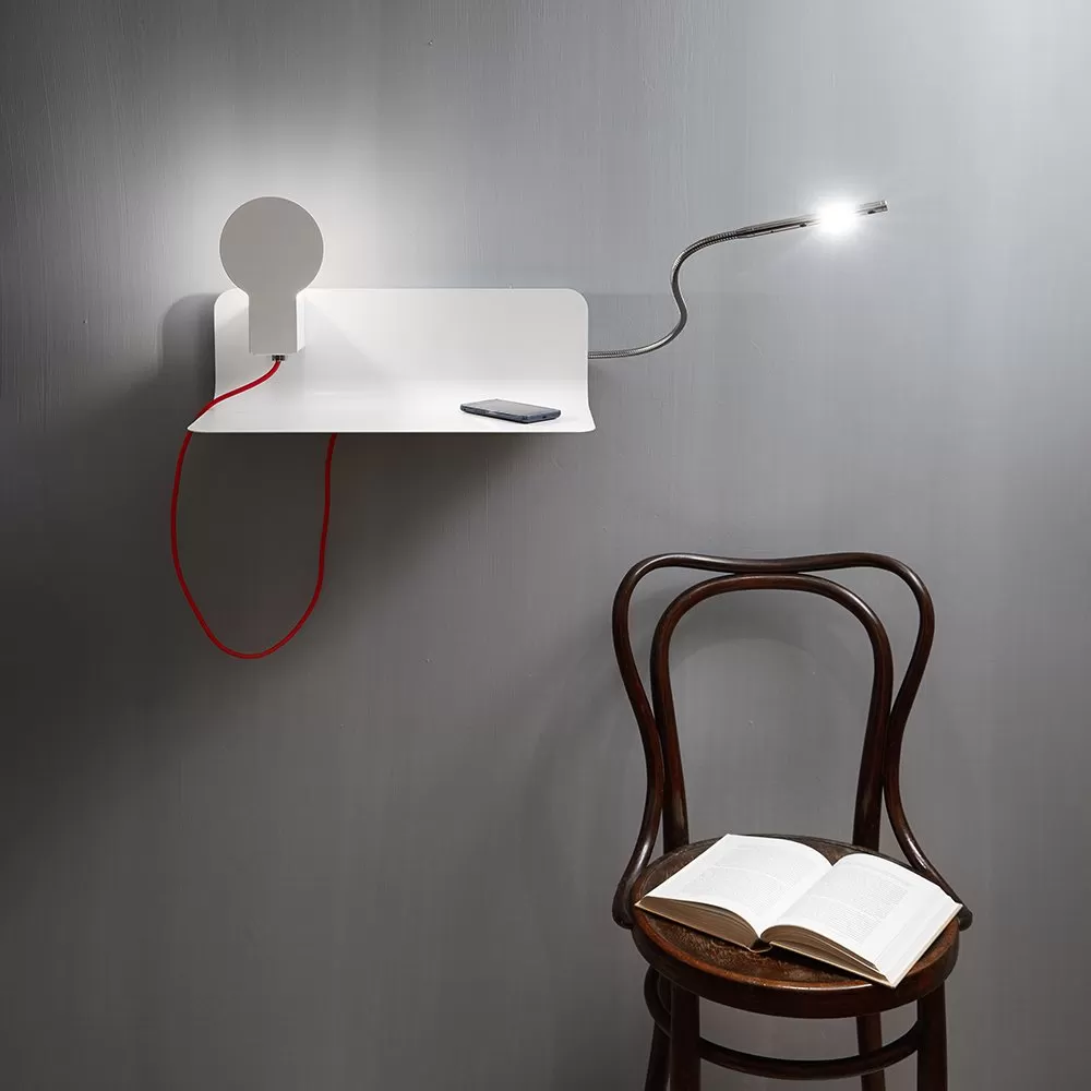 Available also with writable surface with markers for the whiteboard, with an optional flexible chrome-plated brass reading light L500mm with LED.