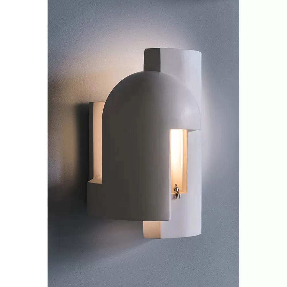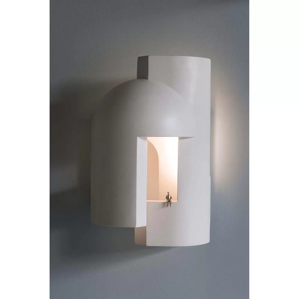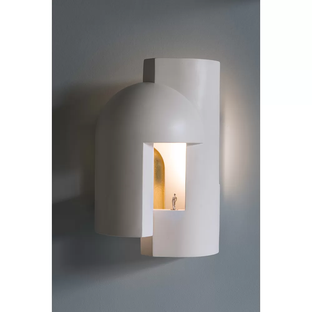 Plaster lamp intended as wall lamps and designed to be scrutinised as if entering a dark alley at dusk and suddenly being pierced with a surreal ray of light. A self-confessed biographical exercise, SOUL invites contemplation of each model through the gaze of a small metal character, either seated or standing, that DCW éditions invites you to handle as a self-portrait of Kalpakian…
