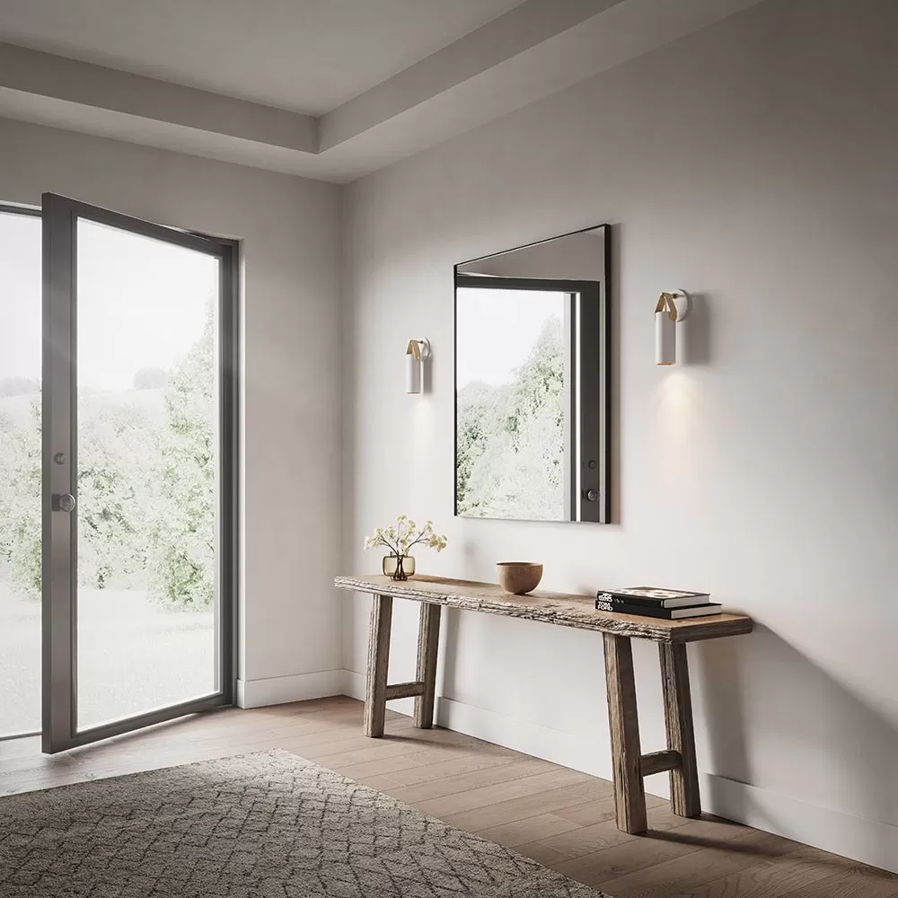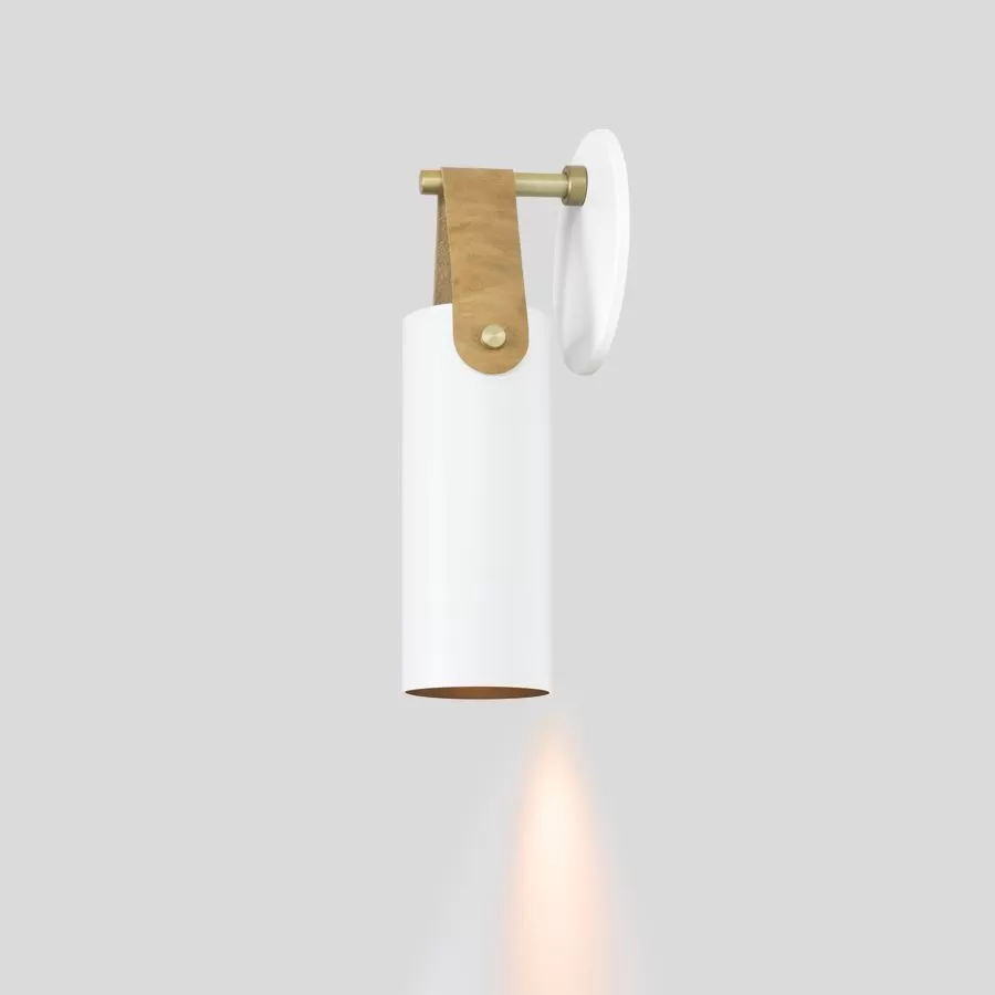 The Spero Wall Sconce illustrates a minimalist mindset without sacrificing design details that define the fixture. Pronounced metal accents join the leather strap to the shade, adding a balanced contrast between the different elements. The bottom aperture allows the delivery of ample light while shielding the rest of the space from glare.