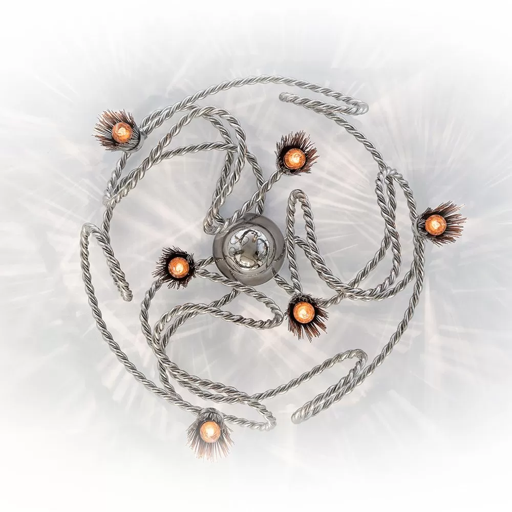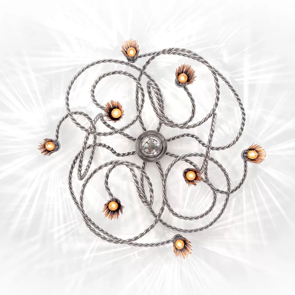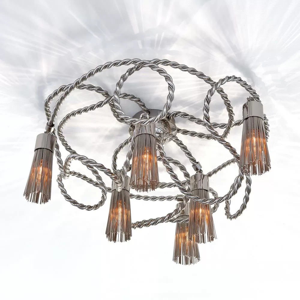 Embracing both the past and present, Sultans of Swing combines imperial elegance with the sheer pleasure of blowing new life into long-standing shapes and forms. This collection was originally inspired by the contrast of a Dutch river landscape surrounding a contemporary house. Only water and air were visible; a boat sat anchored by a huge twist of rope. Inside the home, classical elements were in abundance, like heavy velvet curtains with tasselled embellishments. The details and atmosphere of the surroundings were translated into a contemporary lighting sculpture – and thus Sultans of Swing was born. Available in three diametres, the twists of rope and illuminated tassels on each ceiling light are handcrafted from steel in a modern nickel finish. Due to its aesthetic values, Sultans of Swing performs well in both classic and contemporary interiors, including stately bedrooms and dressing rooms.