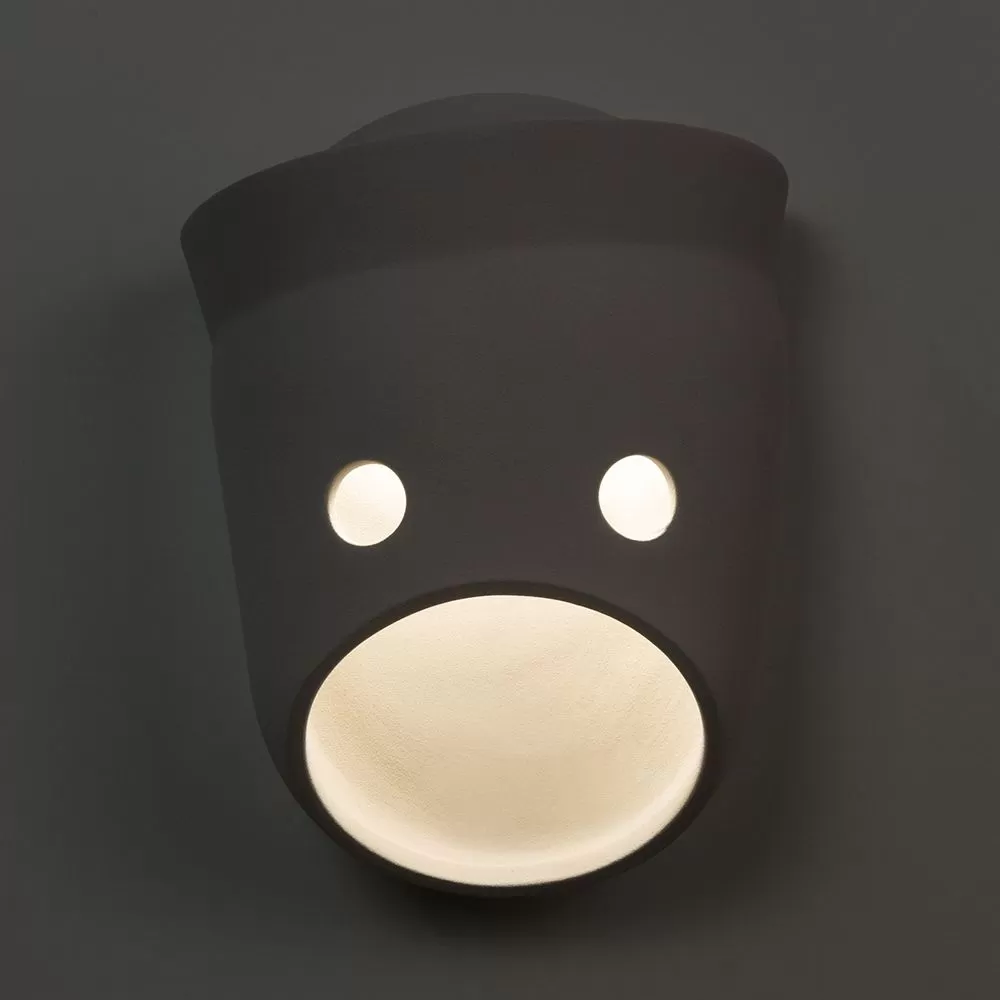 ‘The Party’ is inspired by a clan of strong, captivating personalities. Their casted ceramic faces bring to light our fascination with secrets, family dynamics and intrigue. If seen together, as a splendid party, they brighten up the stage with their cool playfulness. Yet behind the lamps’ composed façades a mischievous side seeps through and touches our imagination. The characters that join The Party each have an intriguing story that connects them. Fragments of their personalities appeal to our own hidden side, stimulating recognition, interest and curiosity. The Mayor – the want-to-be aristocrat. Coco – the opportunist. Bert – the black sheep. Glenn – the patriot. Ted – the evil mastermind. When seen together, as a splendid party, they brighten up the stage with their cool playfulness. Yet behind the lamps’ composed façades a mischievous side seeps through and touches our imagination. The lamps share the same basic tactile feel, a subtle roughness given by the granular ceramic finish, but are distinguished by their individual style and detailing.