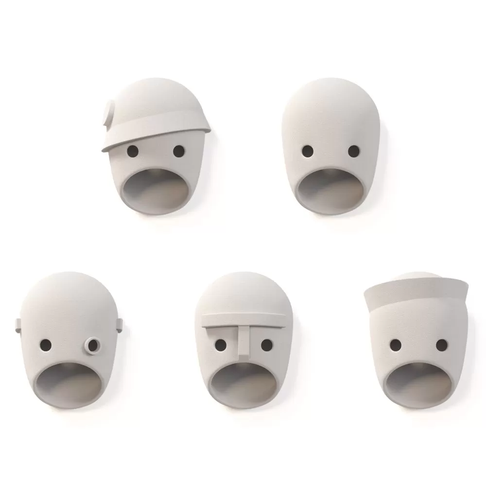 ‘The Party’ is inspired by a clan of strong, captivating personalities. Their casted ceramic faces bring to light our fascination with secrets, family dynamics and intrigue. If seen together, as a splendid party, they brighten up the stage with their cool playfulness. Yet behind the lamps’ composed façades a mischievous side seeps through and touches our imagination. The characters that join The Party each have an intriguing story that connects them. Fragments of their personalities appeal to our own hidden side, stimulating recognition, interest and curiosity. The Mayor – the want-to-be aristocrat. Coco – the opportunist. Bert – the black sheep. Glenn – the patriot. Ted – the evil mastermind. When seen together, as a splendid party, they brighten up the stage with their cool playfulness. Yet behind the lamps’ composed façades a mischievous side seeps through and touches our imagination. The lamps share the same basic tactile feel, a subtle roughness given by the granular ceramic finish, but are distinguished by their individual style and detailing.