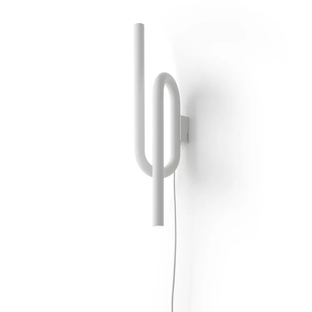 The lightness of a sign that outlines a body and a form to narrate a function. Tobia is an example of how simplicity can have character. Available with and without cable, Tobia wall emits light upwards and downwards.