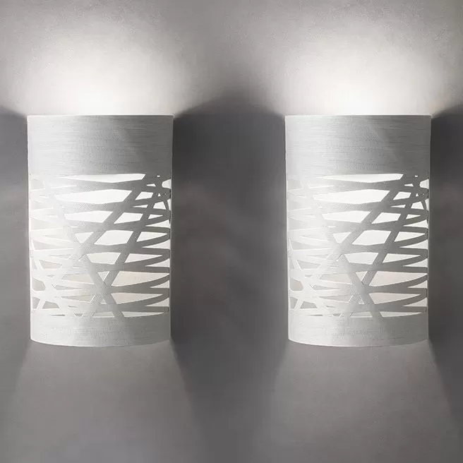 Tress wall in two sizes, designed to create an impressive theatrical effect, yet taking up so little space, thanks to the light reflected in the surroundings and streamed towards the ceiling.