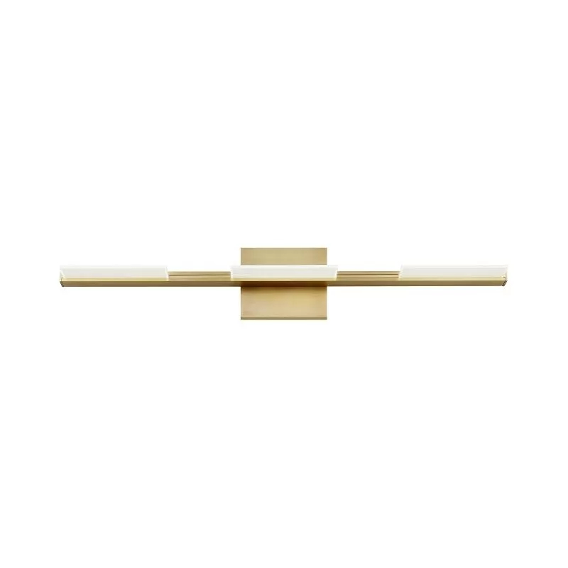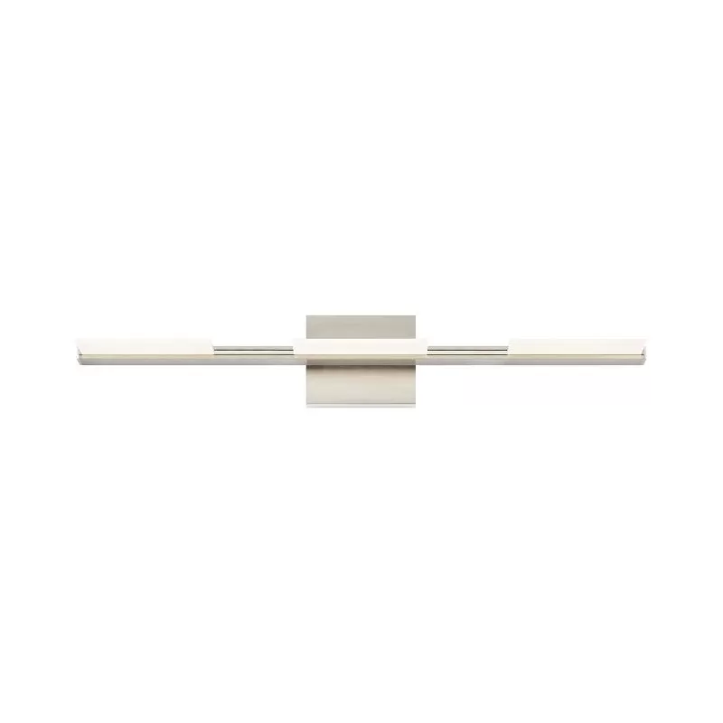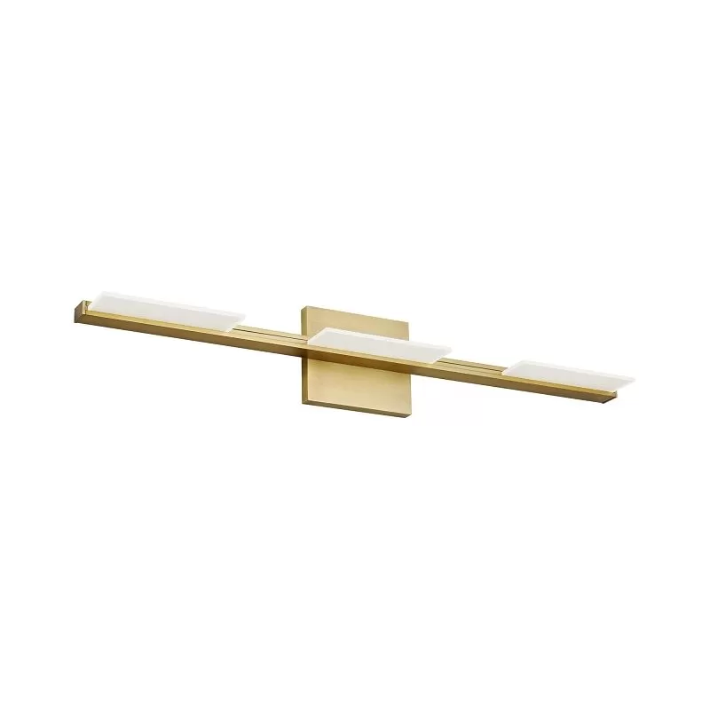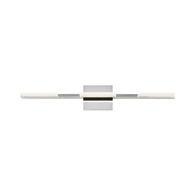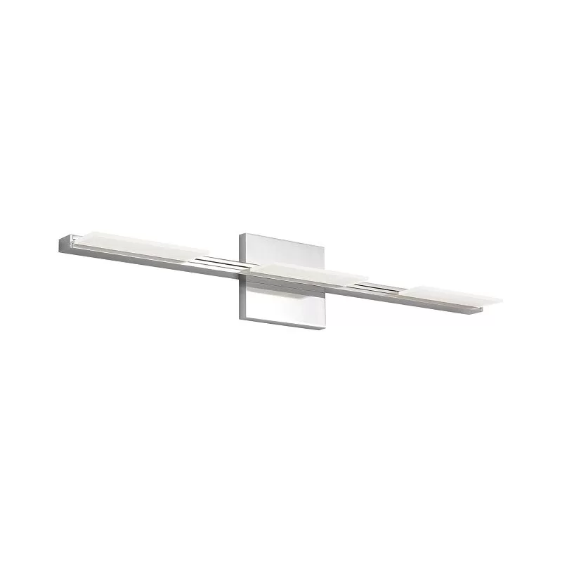Tris by Sean Lavin reflects simple geometric aesthetics that define this modern 3-light bath vanity fixture. Integrated LED light guide technology appears as frosted glass when off then illuminates across its surface when turned on. Spanning 25″ in length and offered modern finishes, the Tris bath bar is a great way to light your bathroom or vanity. Lamping options are compatible with most dimmers. Refer to the Dimming Chart for more information.