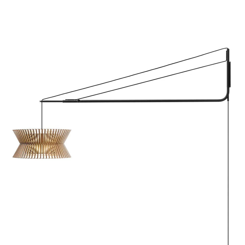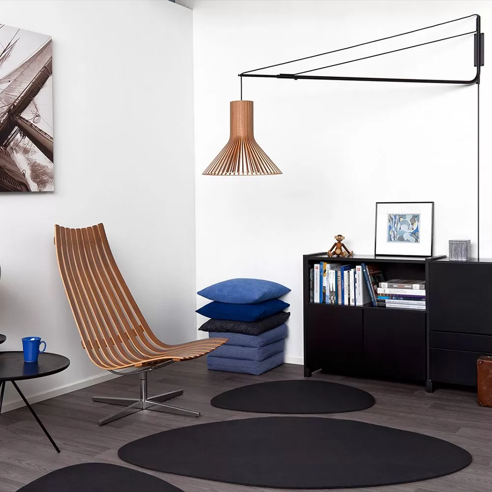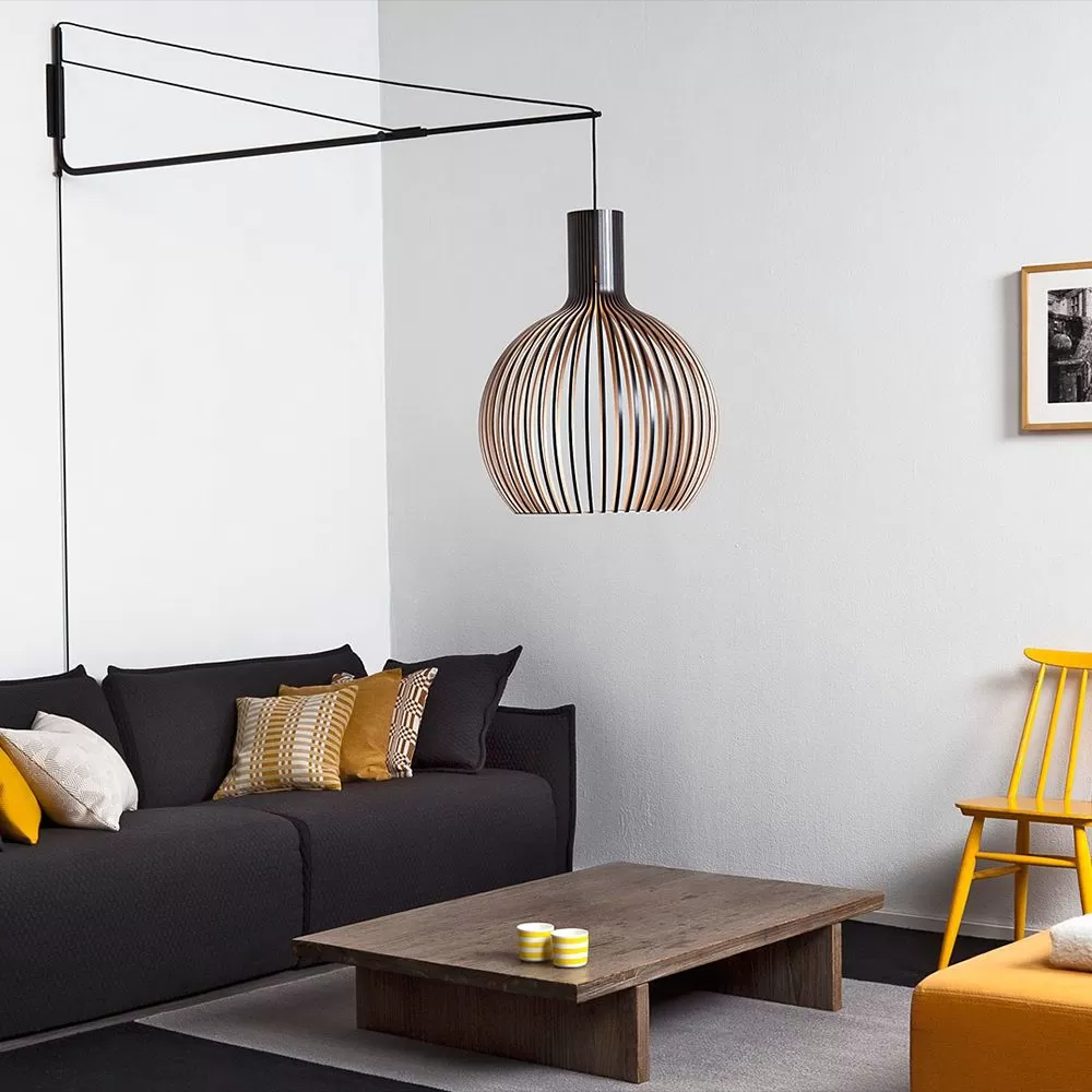 Adjustable suspension arm that enables the use of the already classic Secto Design pendants in a new and creative way. With the wall mounted suspension arm the pendants Secto, Secto Small, Octo, Octo Small, Victo, Puncto and Kontro can be placed in a space where ceiling suspension is not an option.