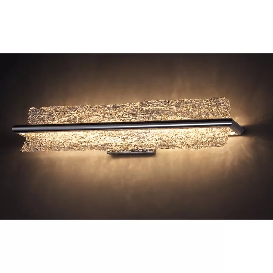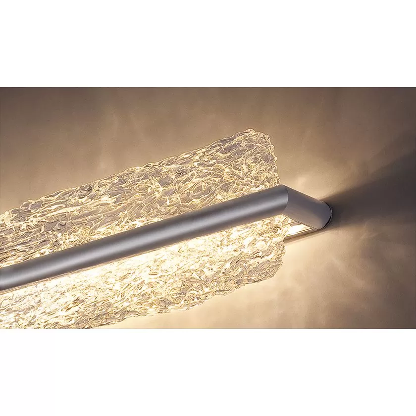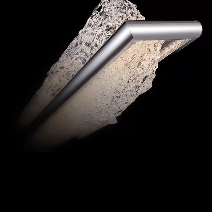 Hand-crafted artisanal Piastra glass steals the show on this dazzling vanity, a versatile design that works vertically beside the mirror or above it horizontally. The glass’s intricate texture captures and refracts the light, and the visual effect is nothing short of stunning. And the cutting-edge LEDs inside are on par with the presentation, featuring excellent color rendering properties and a long-rated lifespan.