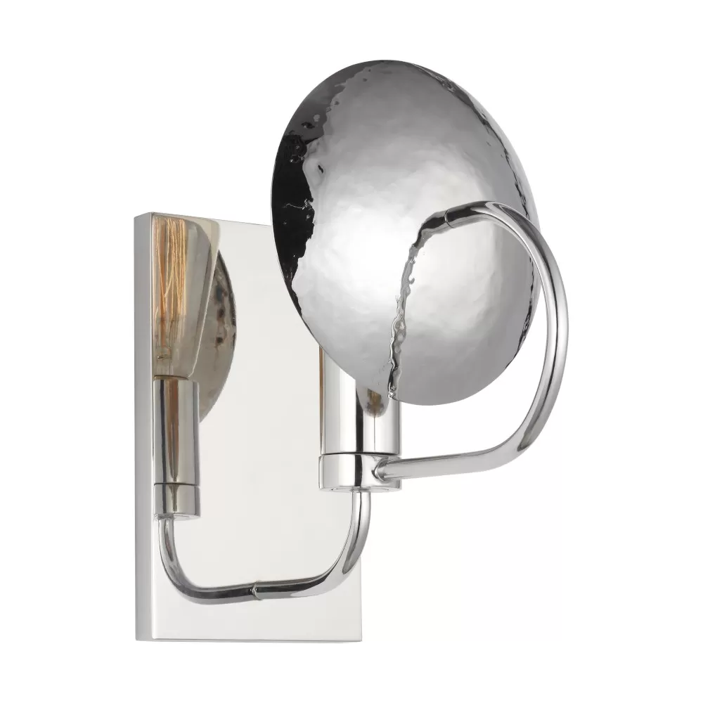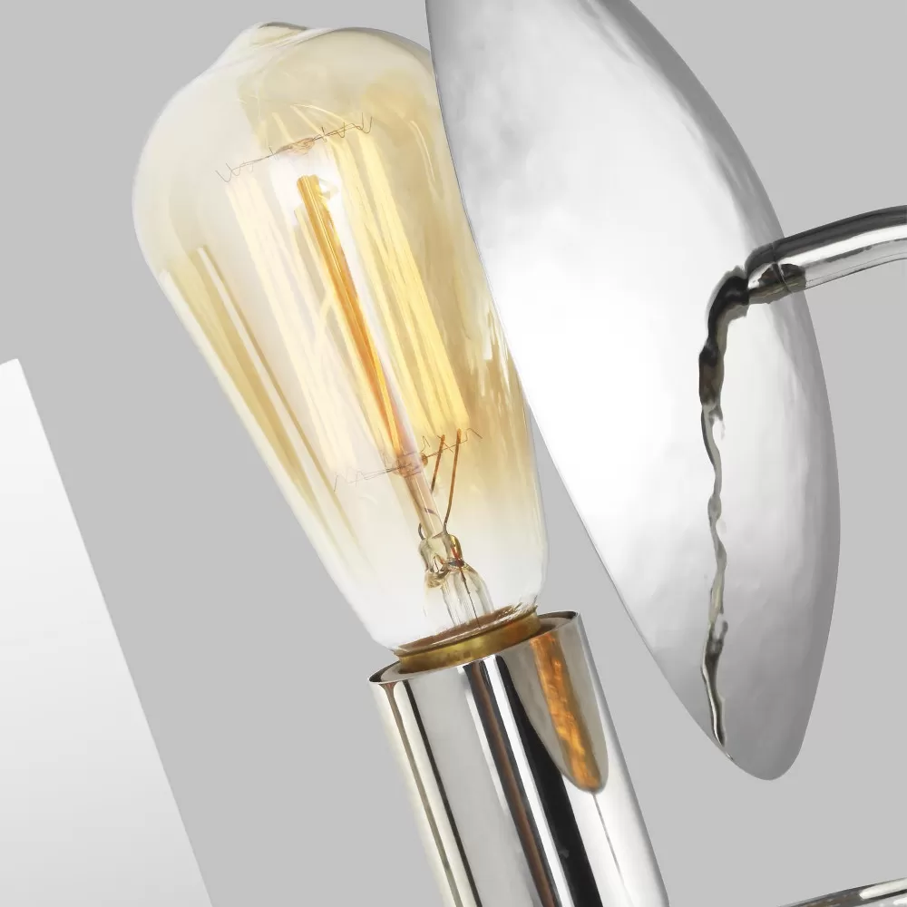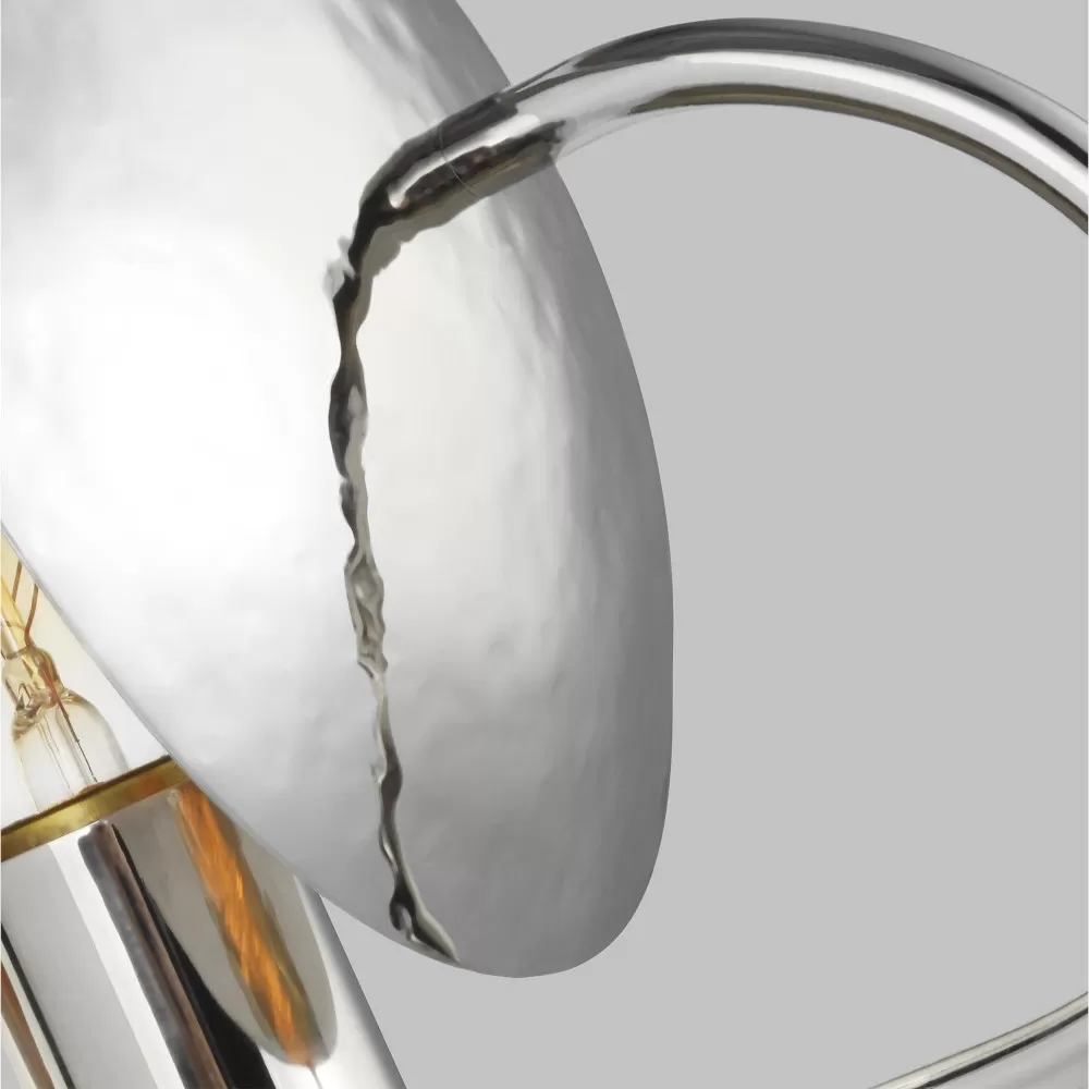Handcrafted of brass and dramatically scaled, our pendant is a statement piece. The rounded industrial form is softened by its hand-hammered texture, and the warm, burnished brass finish reflects light beautifully.