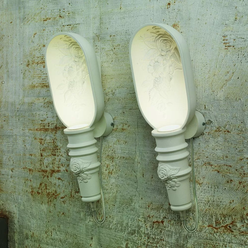 The family it derives from lights up construction sites whereas Work In Progress is overwhelmed of a pure white and romantic floral decorations and it enters on tiptoe in the most refined and intimate spaces.